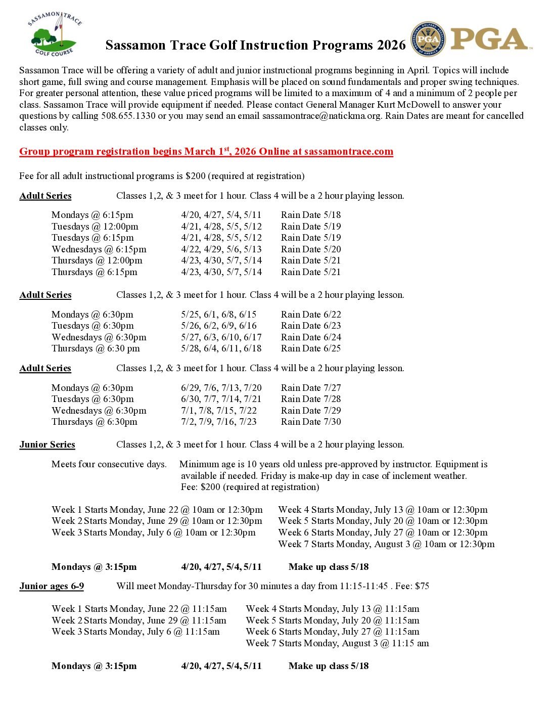 Juniors Age 6-9 Lessons